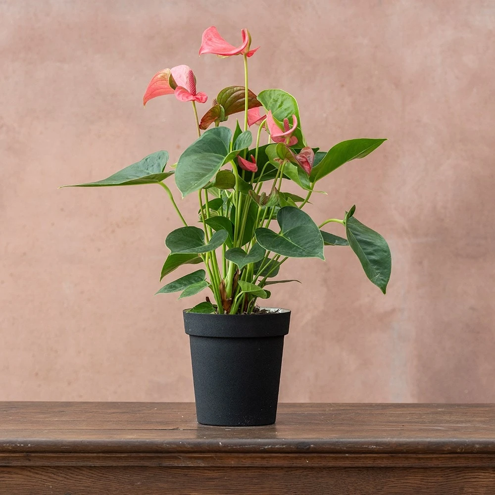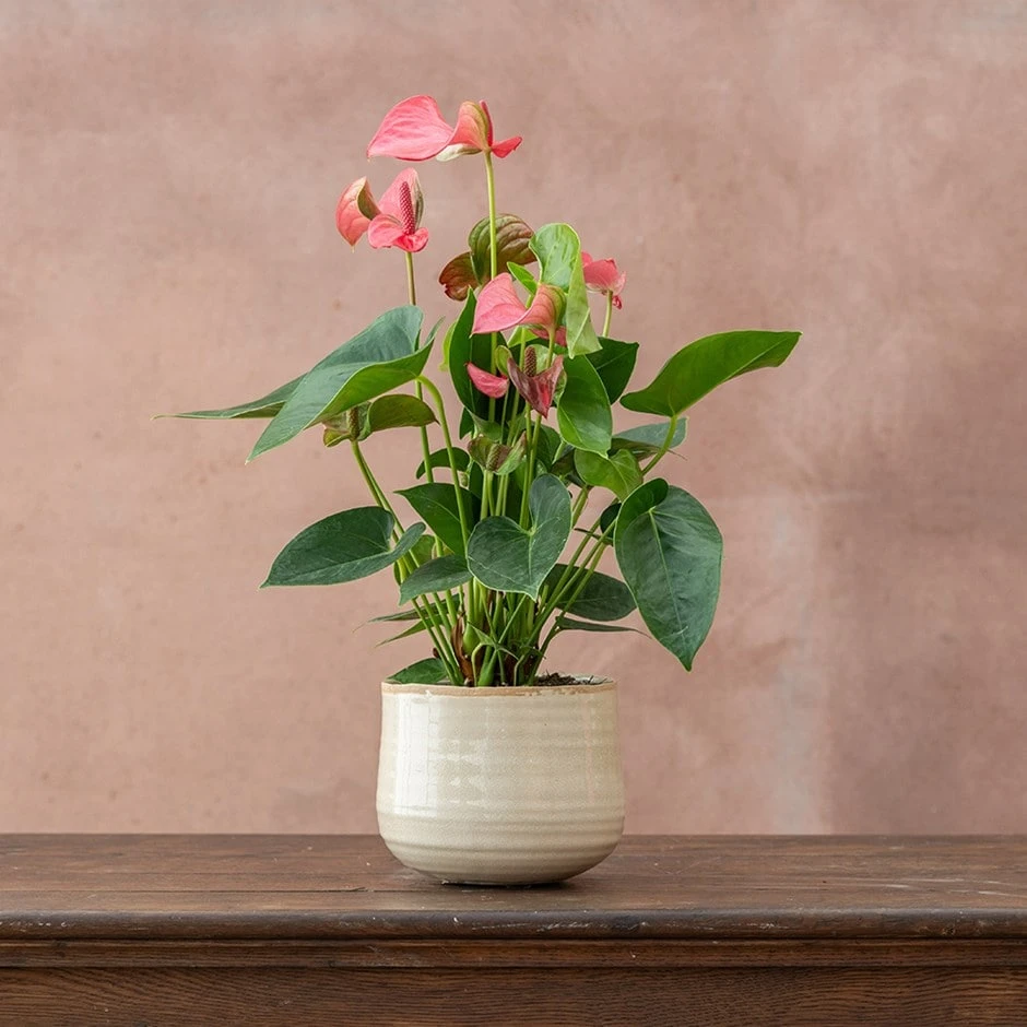 Waxy pink flowers with a prominent ‘tail’ appear off and on throughout the year on this pretty houseplant. Flamingo flowers are relatively easy to look after and even when not in bloom, the glossy green leaves still look great – and it will last a lot, lot longer than a bunch of flowers.