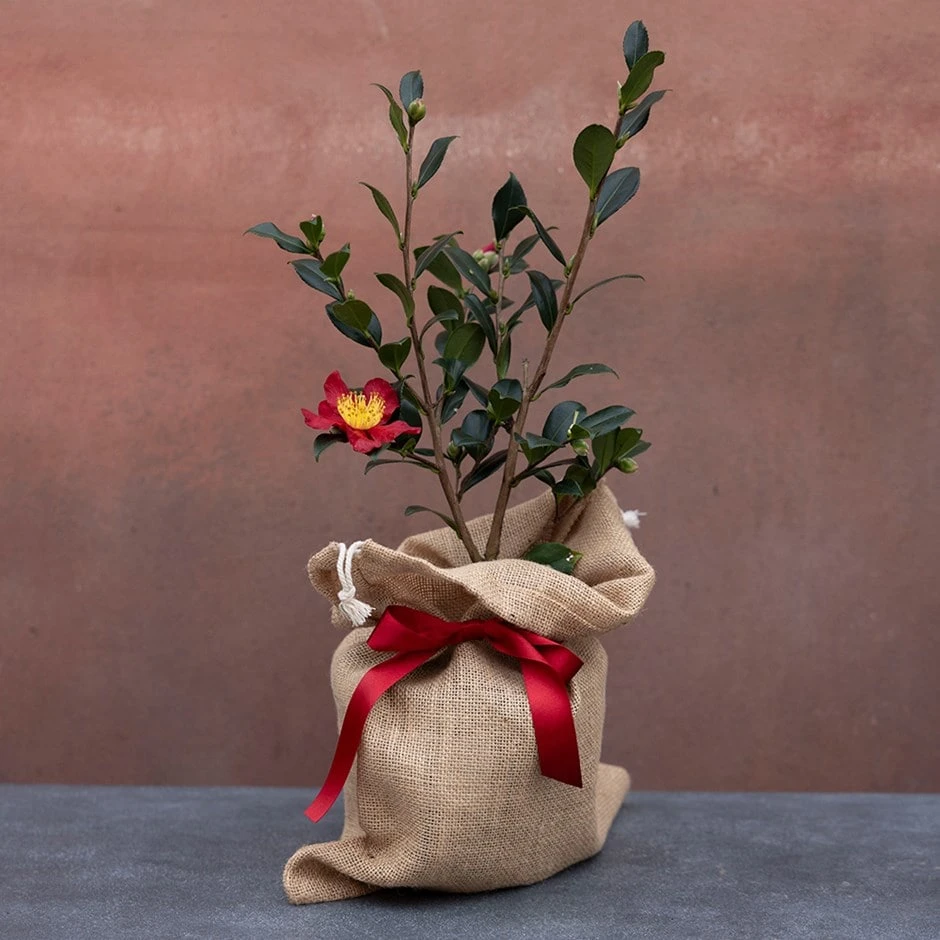 Glossy dark green leaves provide a sumptuous backdrop for the profusion of yellow-eyed, red flowers, when they appear in late autumn and early winter. Their colouring is very striking – and is perfect for the build up to the Christmas season, but the dark green foliage offers year-round structure and interest. If left to grow naturally, this is a relatively compact shrub with a pyramidal habit, but it can also be trained against a wall, or grown in a large pot if space is at a premium.