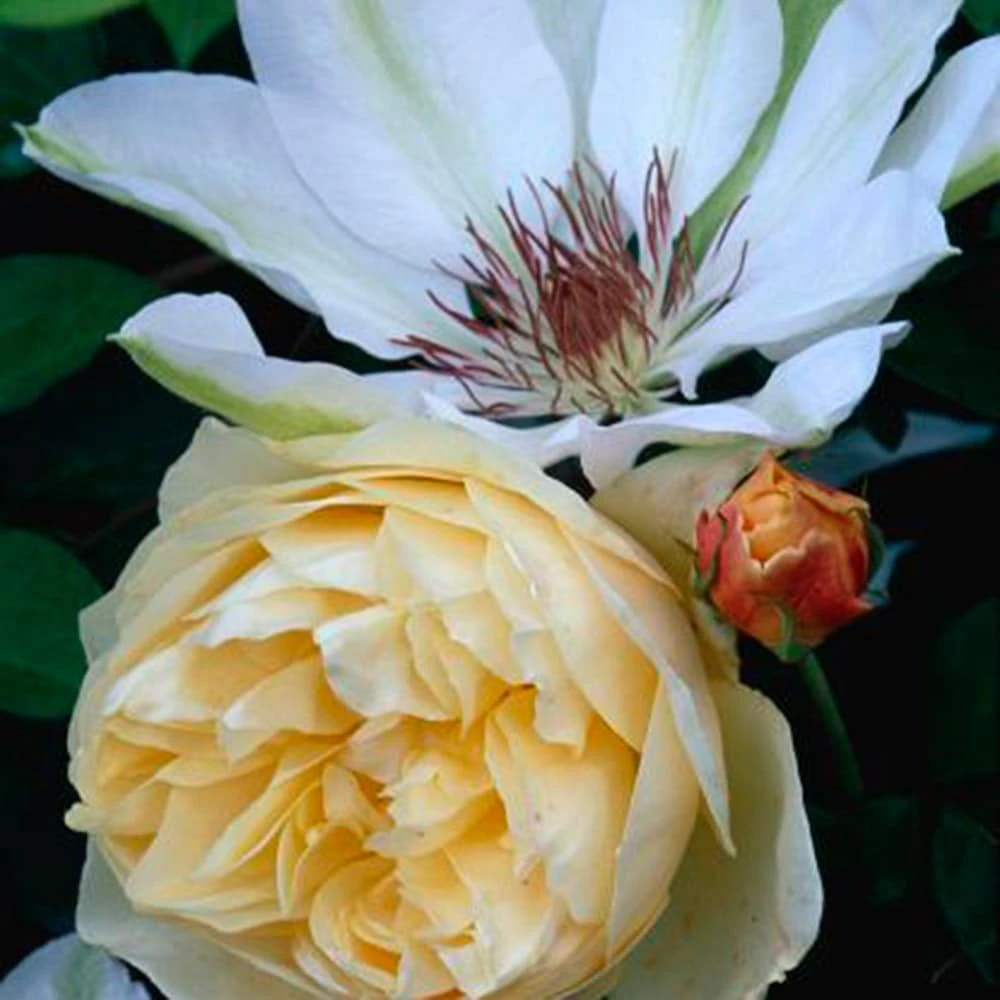 Large, creamy-white flowers, with chocolate brown anthers, are produced throughout the summer on this vigorous clematis. It is perfect for growing up a trellis with other climbers or to cover a wall. To encourage blooms to cover the whole plant, train stems so that they are evenly spaced on the trellis.