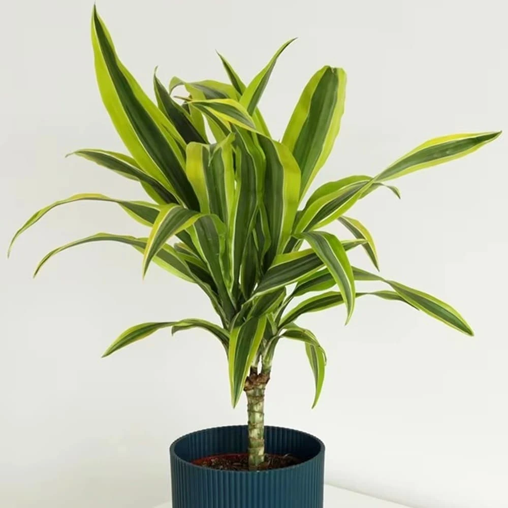 This is an undemanding houseplant, with colourful foliage that is a mixture of green, cream and lime stripes. As it grows, it forms a tree-like stem with the foliage on top, and as it matures it will usually start to form sideshoots. A good choice if you are looking for something that will eventually get quite tall, without taking up too much floor space.