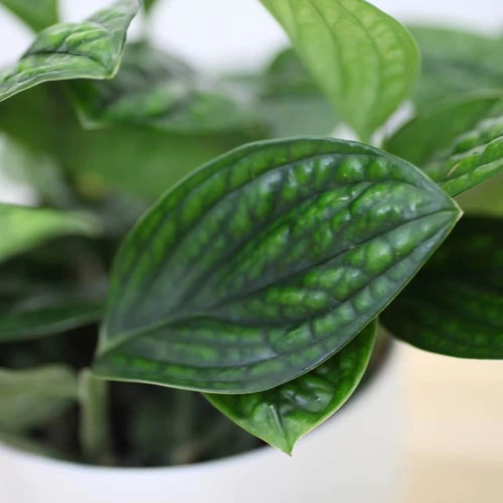 A close relative of the ever-popular variegated devil’s ivy, this new form has heavily veined, marbled leaves. If you give this plant something to clamber up (like a moss pole), then you can grow it as a climber, otherwise its lax stems will cascade down, spilling over the edges of a shelf or windowsill.