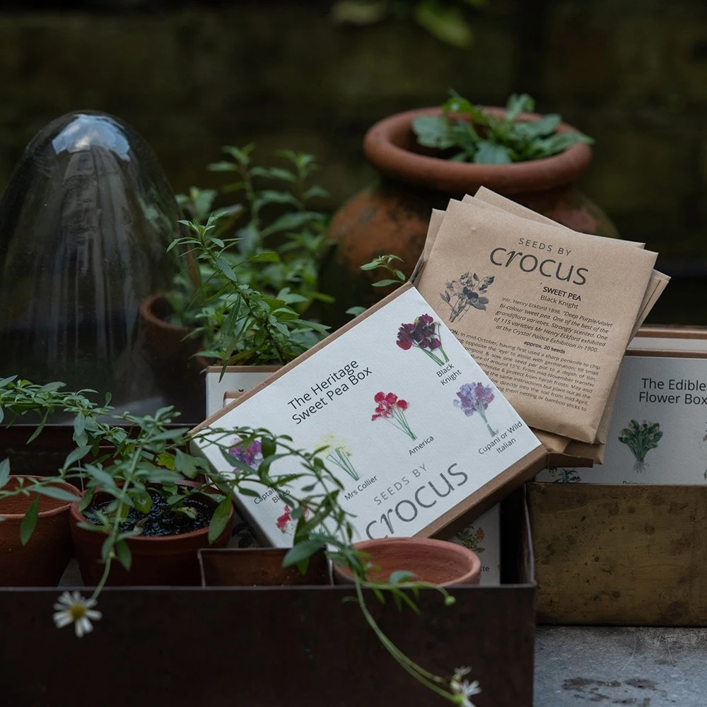 A heritage collection of 6 sweetly-scented sweet pea seeds in a decorative gift box.