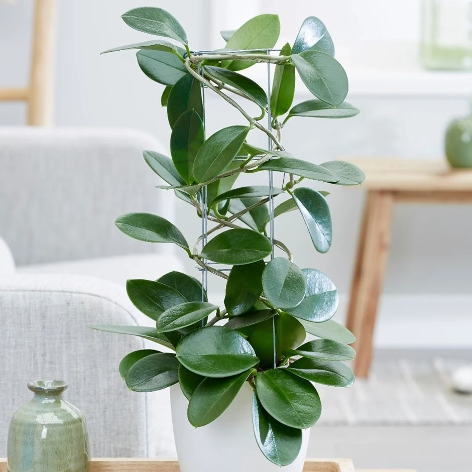 The stems of this twining climber are threaded with pairs of slightly succulent dark green leaves, and in summer clusters of red-eyed white flowers form, which have a deliciously sweet perfume.