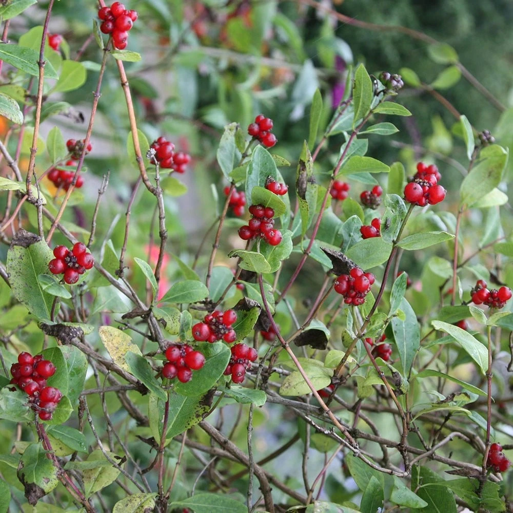 Masses of fabulously fragrant, tubular, white flowers that turn deep yellow, and are streaked red outside, smother this honeysuckle in late spring. In hot summers, the flowers may be followed by small, bright red fruits. Deciduous and earlier flowering than many other varieties, this one will quickly cover a boundary wall or fence in full sun or partial shade. Its loose, spreading habit makes it a perfect choice for a cottage or wildlife garden. May produce a second flush of paler, yellowish flowers later in summer too.