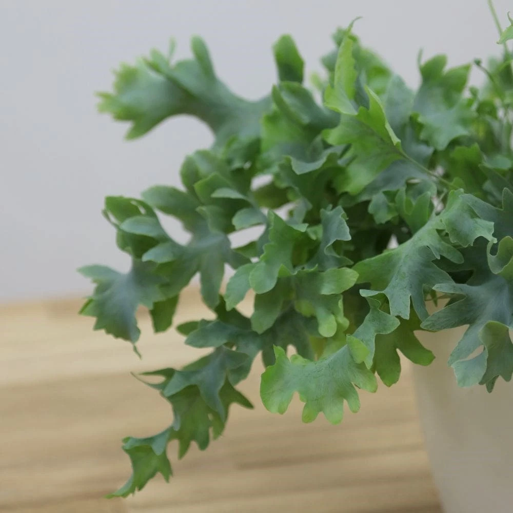 The ruffled fronds of this attractive fern develop a subtle bluish flush as they mature. Originating from tropical rainforests with high humidity, this plant will flourish in a bright steamy bathroom or kitchen.