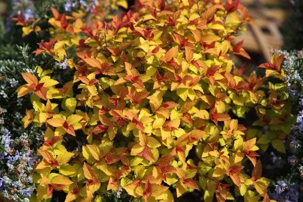 Both the foliage and the flowers make this an interesting and colourful shrub. The foliage emerges each spring with a burnished bronze-red flush, but as the leaves mature they turn bright yellow, then luminous green. In mid- and late summer, clusters of dark pink flowers appear, seemingly backlit by the glowing foliage. Compact and easy to grow, it makes an excellent informal, low hedge or groundcover plant for a sunny well-drained border.