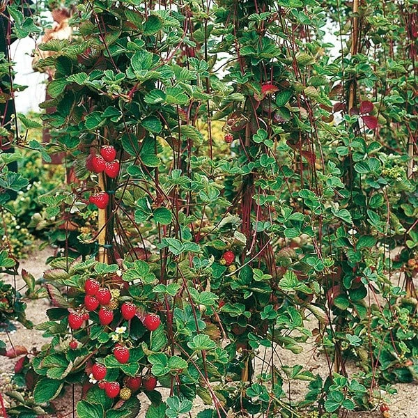 Produces runners up to 1m long which can be tied onto a sturdy cane, wigwam or trellis enabling the fruit to be kept off the ground and away from certain pests like slugs and snails, ‘Mount Everest’ is a mid-season strawberry that produces sweet, juicy fruits over a long period from mid-June right the way into September. A fast and strong growing plant, this tasty variety will be equally dramatic spilling from windowboxes and hanging baskets. mid-sized strawberries for a long period from mid June up to mid september.